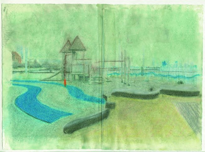Ende 2023 hat Jenny 8 del Corte Hirschfeld die Spielplätze dann gezeichnet: mit Pastellkreide und