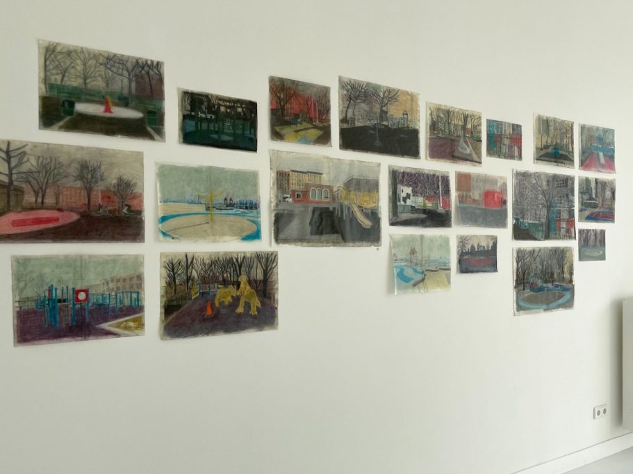 Jenny del Corte Hirschfeld has always found playgrounds to be particularly saddening non-places, precisely because they are part of our cultural heritage. In New York, she collected photographs of playgrounds to examine non-places, places of use and play, and their contextual integration, resulting in a typology that visualizes the essential and the comparable.
