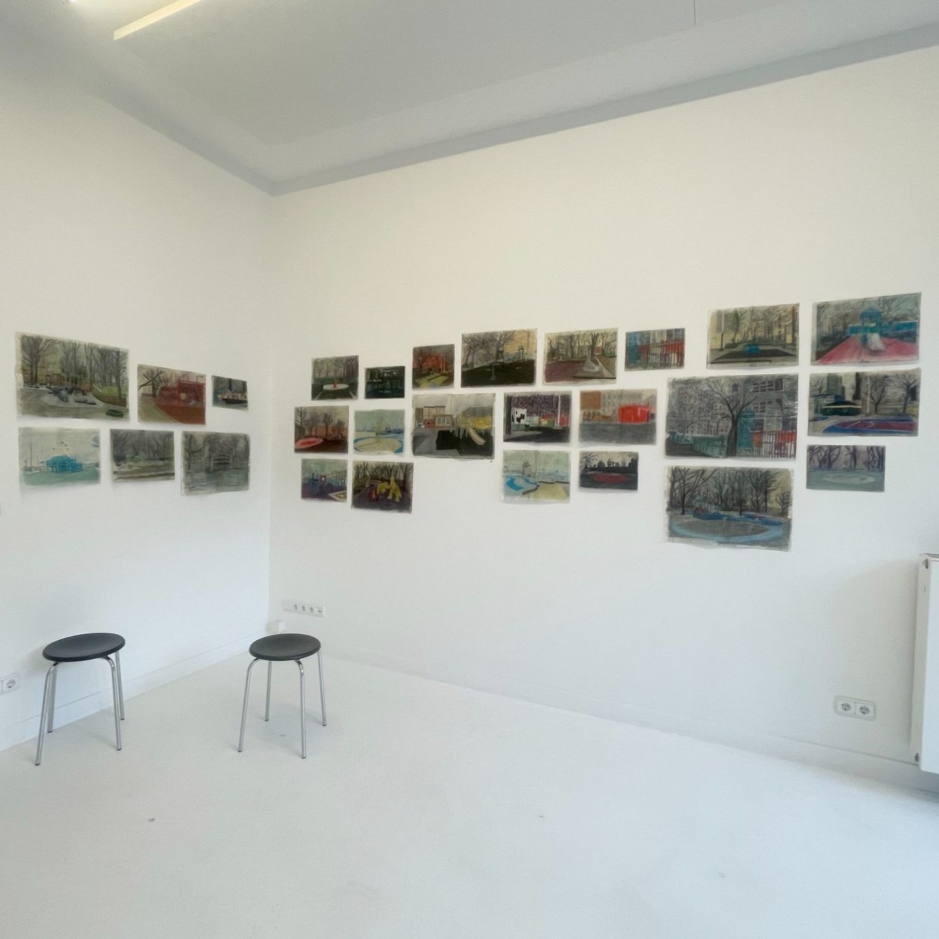 Dies arbeitet Jenny in unterschiedlichen Bildformaten, die sie auf der Litfaßsäule arrangiert, überzeugend heraus: Ihr genauer Blick auf horizontale und vertikale Elemente und das Sezieren allgemeiner Melancholie ist auch eine Schule des Sehens. Sind Spielplätze als Bildungsorte